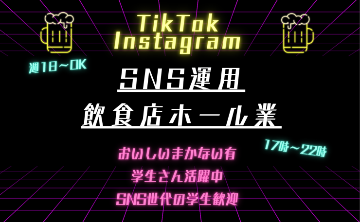 【週1日~OK・17時~22時 飲食店のSNS更新と接客業務】